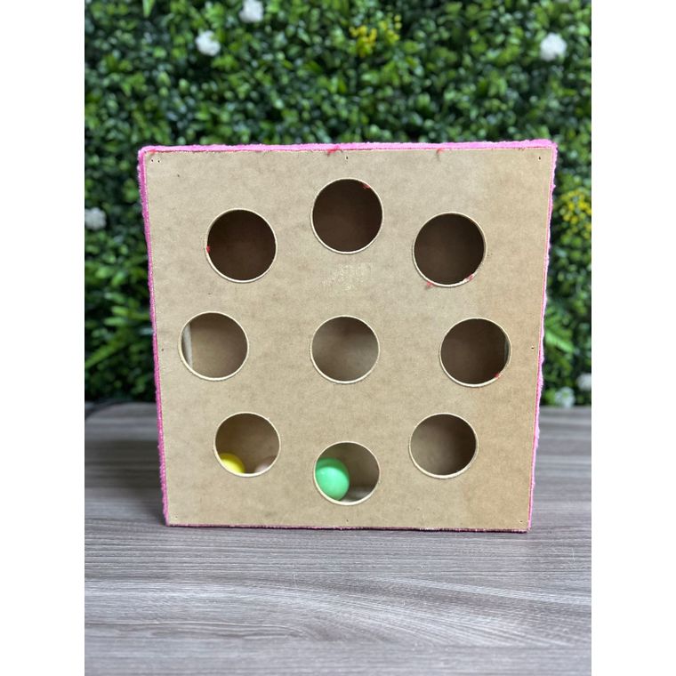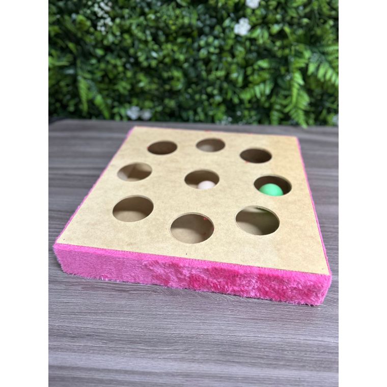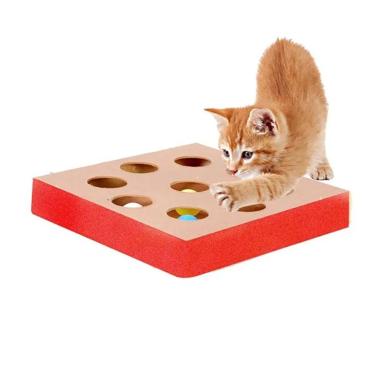 Com um design inteligente e aberturas estratégicas, o gato tenta capturar as bolinhas que se movem dentro da caixa, o que mantém sua atenção e ajuda a combater o tédio.